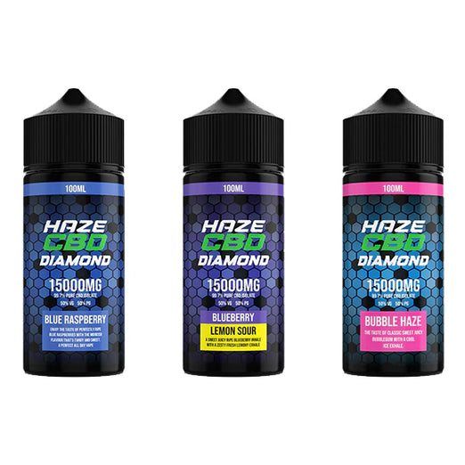Experience the exhilarating and powerful benefits of Haze's top-of-the-line 15000mg CBD E-liquids. Infused with premium CBD isolate for a luxurious and potent effect, each flavour of Haze's range is meant to be enjoyed with either a vape pod system or a lower wattage! Made In The UK. Bring depth and exquisite flavour to your vaping experience with Haze Diamond 15000mg CBD E-liquids. Get ready for a powerful, luxurious, and enjoyable CBD experience whenever you vape.