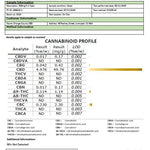 Ingredients: Cannabidiol (CBD), Cannabinol (CBN), Cannabigerol (CBG), Cannabichromene (CBC), Cannabidiolic Acid (CBDA), Tetrahydrocannabinol (d9 THC), Tetrahydrocannabinolic Acid (THCa), Naturally Present Terpenes