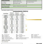 Ingredients: Cannabidiol (CBD), Cannabinol (CBN), Cannabigerol (CBG), Cannabichromene (CBC), Cannabidiolic Acid (CBDA), Tetrahydrocannabinol (d9 THC), Tetrahydrocannabinolic Acid (THCa), Naturally Present Terpenes