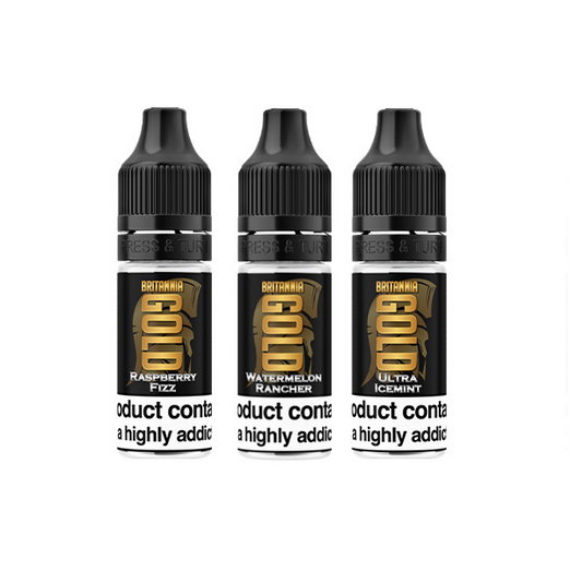 Ideally suited for Mouth to Lung and Pod vaping devices, the 10ml Britannia Gold E-Liquids are 40VG/60PG which means as soon as you vape one of the flavours you'll receive a hit to the throat stronger than 50VG/50PG e-liquids. With a whole raft of tantalising flavours, for premium quality towards vaping customers.
