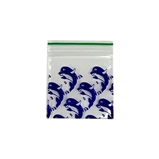- Water Resistance - Spill Proof - Reusable - Resealable - Purple Dolphin Design - 30mm x 30mm The box contains: 10 packs of 100 Baggies